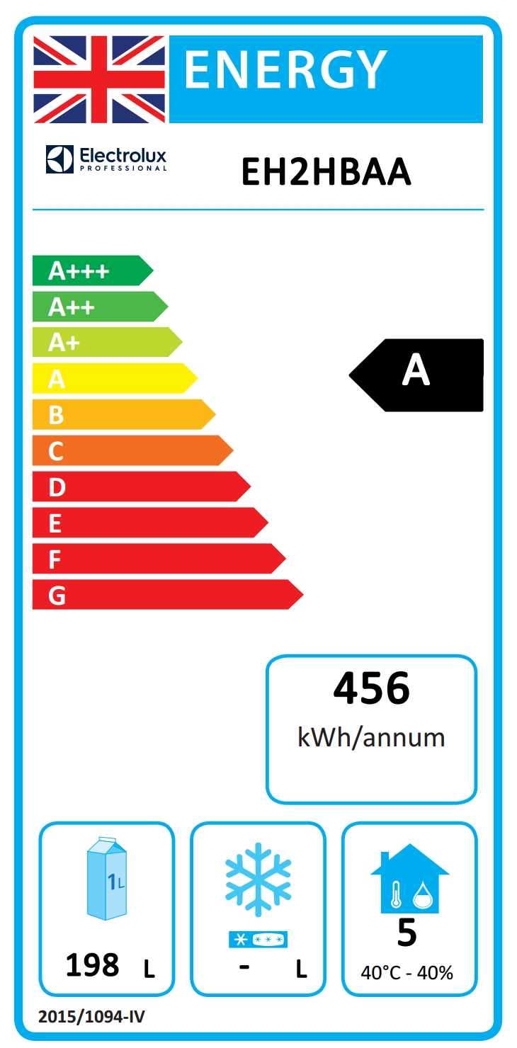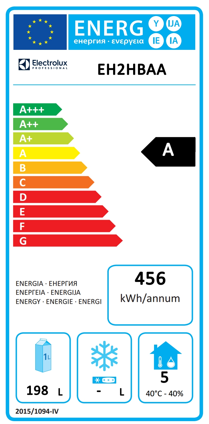 Yearly and daily energy consumption (EU Reg. 2015/1094): 456kWh/year - 1kWh/24h